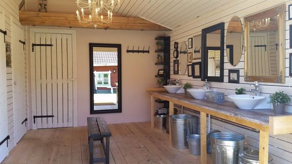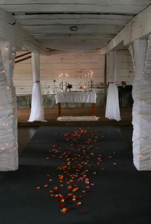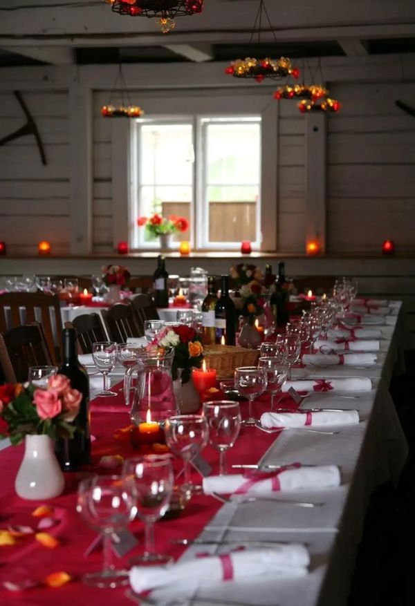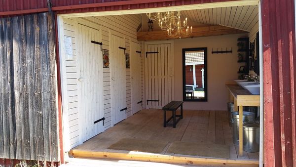 Waarin Baarissa on tehty pieni muutos, joka tuo tilaan entistä enemmän avaruutta ja valoa. Rakennuksen sisäkattoa ei enää ole ensimmäisessä salissa (kuvissa ensimmäiset), joten tila avautuu nyt suoraan korkealle navetan kattorakenteisiin asti. Vaakasuorat, kauniisti säilyneet hirret tarjoavat erinomaiset mahdollisuudet valojen ja koristeiden ripustamiseen. Näin yläpuolella avautuva korkea tila luo ilmavan ja juhlavan tunnelman.